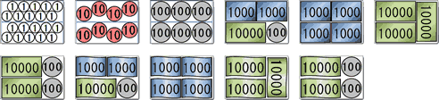 ただし、「1000」と「10000」は利用頻度が低いので、マグネットに貼る必要があるかどうかは疑問の残るところです。普通紙に印刷した後に、「1」「10」「100」を作ったときに出てくるマグネットシートの切れっ端しを裏から貼るだけでも良いかもしれません。